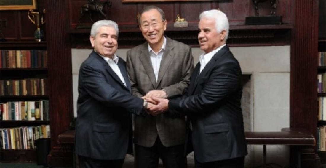 photo: UN Secretary General Ban Ki-Moon with Greek Cypriot leader Christofias and Turkish Cypriot leader Eroglu at talks in New York earlier this year (archive picture courtesy of the UN)