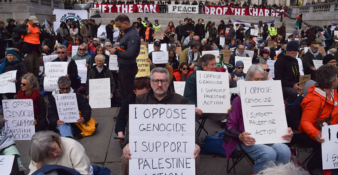 Photo: Protestors in London condemn Israeli genocide in Gaza in a protest in Trafalgar Square on 4 October 2025 (picture courtesy of The New Arab, London).
