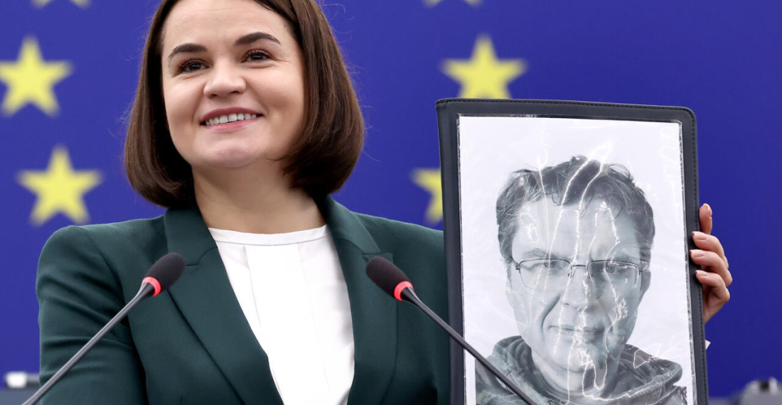 The choice of this year's winners "sends a strong message to all political prisoners that you are not alone, and journalism is not a crime," exiled Belarusian opposition leader Svetlana Tikhanovskaya told lawmakers. She was in Strasbourg with her recently released husband.