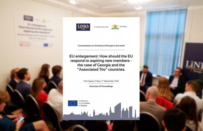 On Friday 17 September, LINKS Europe, in association and with the support of The City of The Hague, hosted the first in a series of events titled ‘Conversations on the future of Europe in the world’, at its offices in The Hague. The series is in the framework of the EU’s ‘Conference on the Future of Europe’ process. After welcome remarks by the Director of LINKS Europe, Dr Dennis Sammut, and Mr Jesse van Velzen on behalf of the International Office of The City of The Hague, participants discussed the topic: EU enlargement: How should the EU respond to aspiring new members - the case of Georgia and the “Associated Trio” countries.